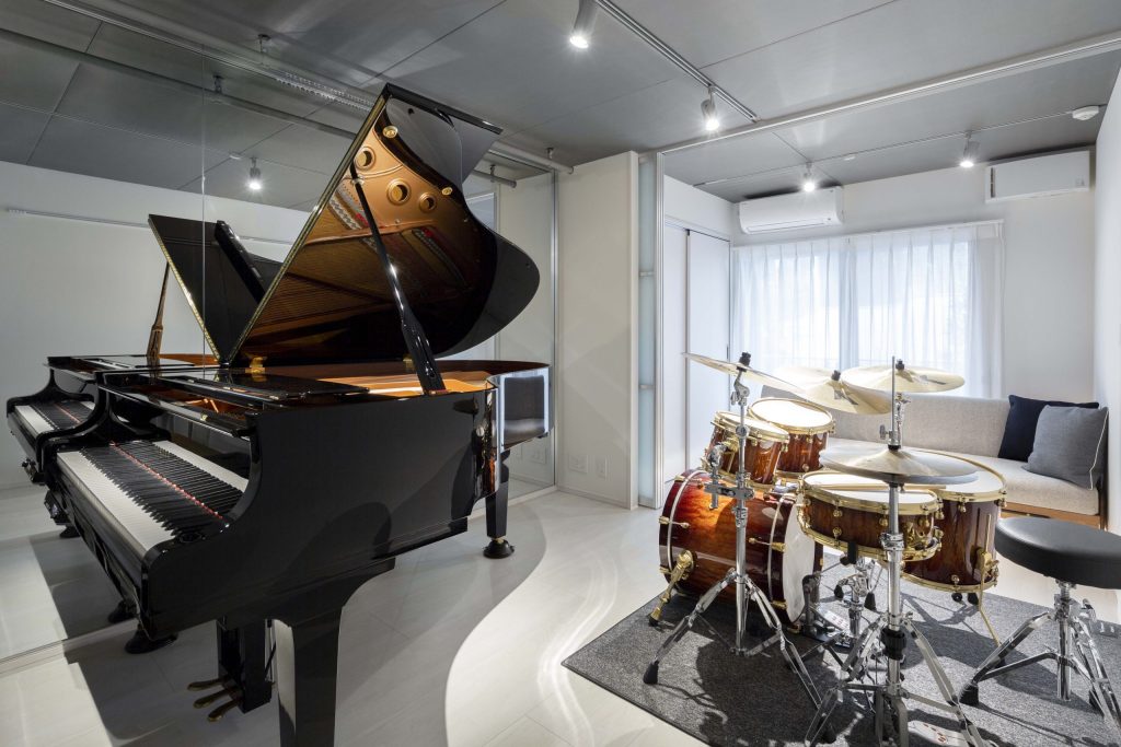 全戸「三重防音構造」により、実測値でDr-100以上を達成。グランドピアノ、生ドラムを含む楽器が24時間演奏可能。大音量のバンド演奏や重低音も安心です。